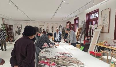 长辛店国潮街区国庆佳节再添文艺新景。10 月 3 日,由长辛店街道党工委、办事处主办,长辛店老友会承办的以“笔墨长辛,先锋印记”为主题的文化雅集活动,在国潮街区【吉福公社】拉开帷幕。画家张春萍作为此次活动的发起人,汇集长辛店老友会画家等十余位艺术家,以墨会友,通过传统书画创作与现代艺术互动相结合的方式,为国庆假期的市民带来一场沉浸式文化体验。长新店街道党工委、办事处领导;吉福公社主理人白芳妃;长辛店老友会艺术顾问张春萍,画家王国樑、张喜来、苏慧茹、龚震宇、㕁会国,书法家马程、陈锡福;北京市画家李长贵、王华、杜建斌、池占海等十余位艺术家出席了雅集开幕仪式,这场活动既是对传统文人雅集形式的当代延续,也是长辛店历史文化街区活化利用的生动实践。